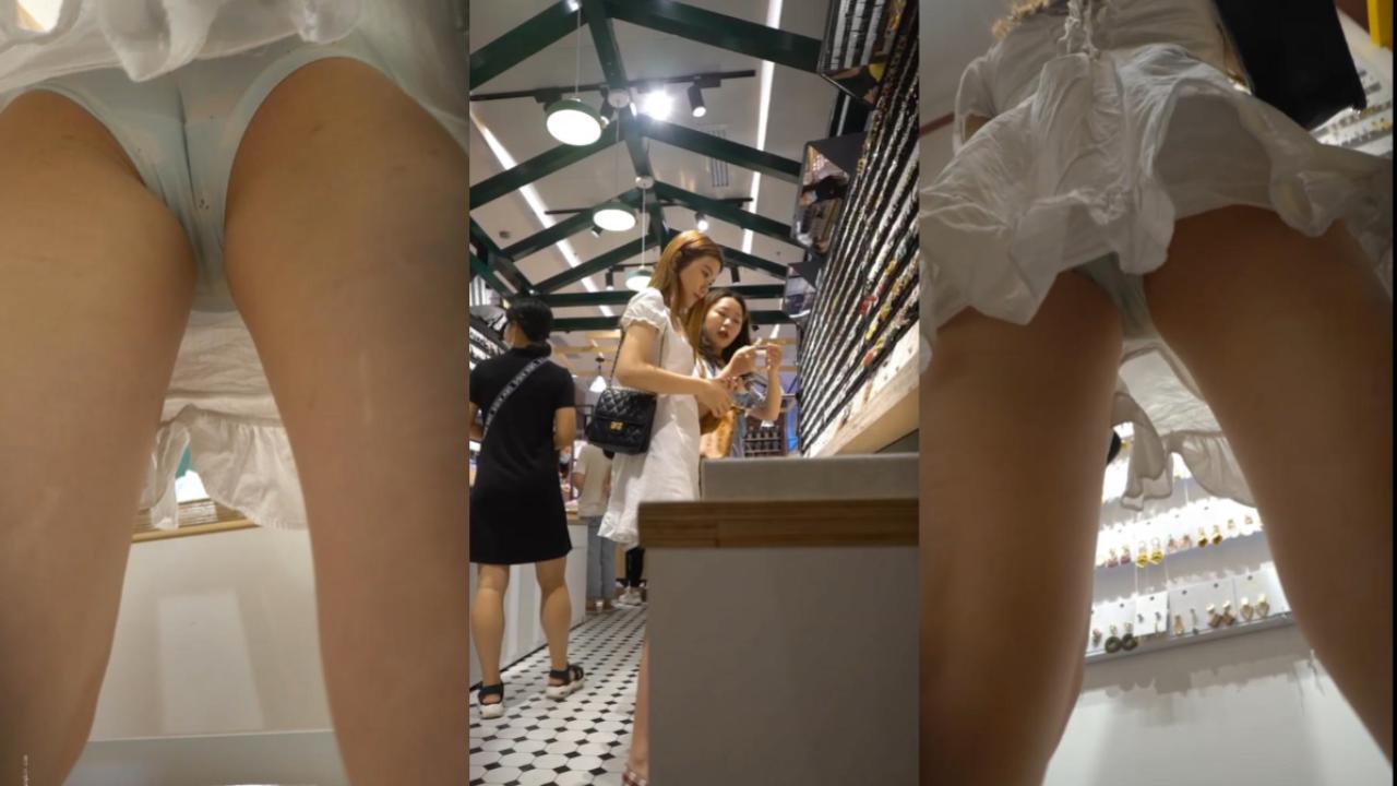商场偷拍白裙长腿清纯女神 多处破洞的蓝内裤前面隐约看到黑毛