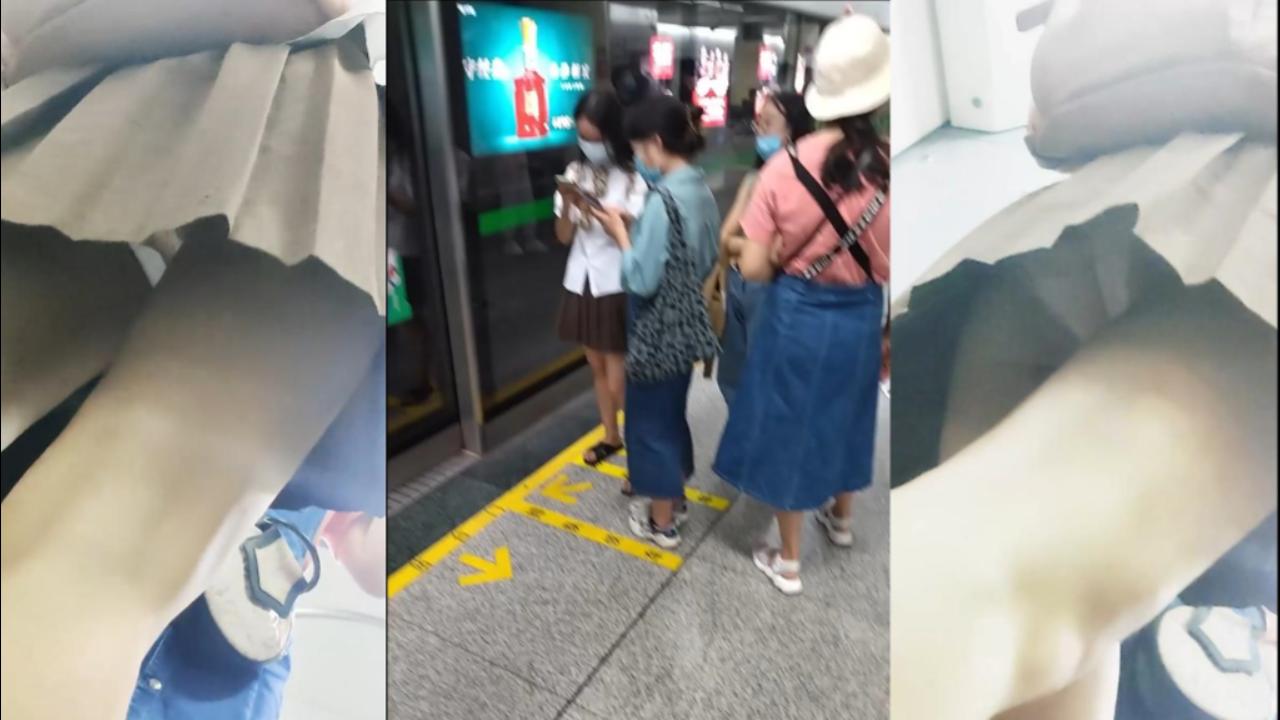 棕色JK裙清纯女大学生出来逛街被无情抄底
